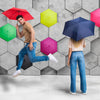 The umbrella with the red dot